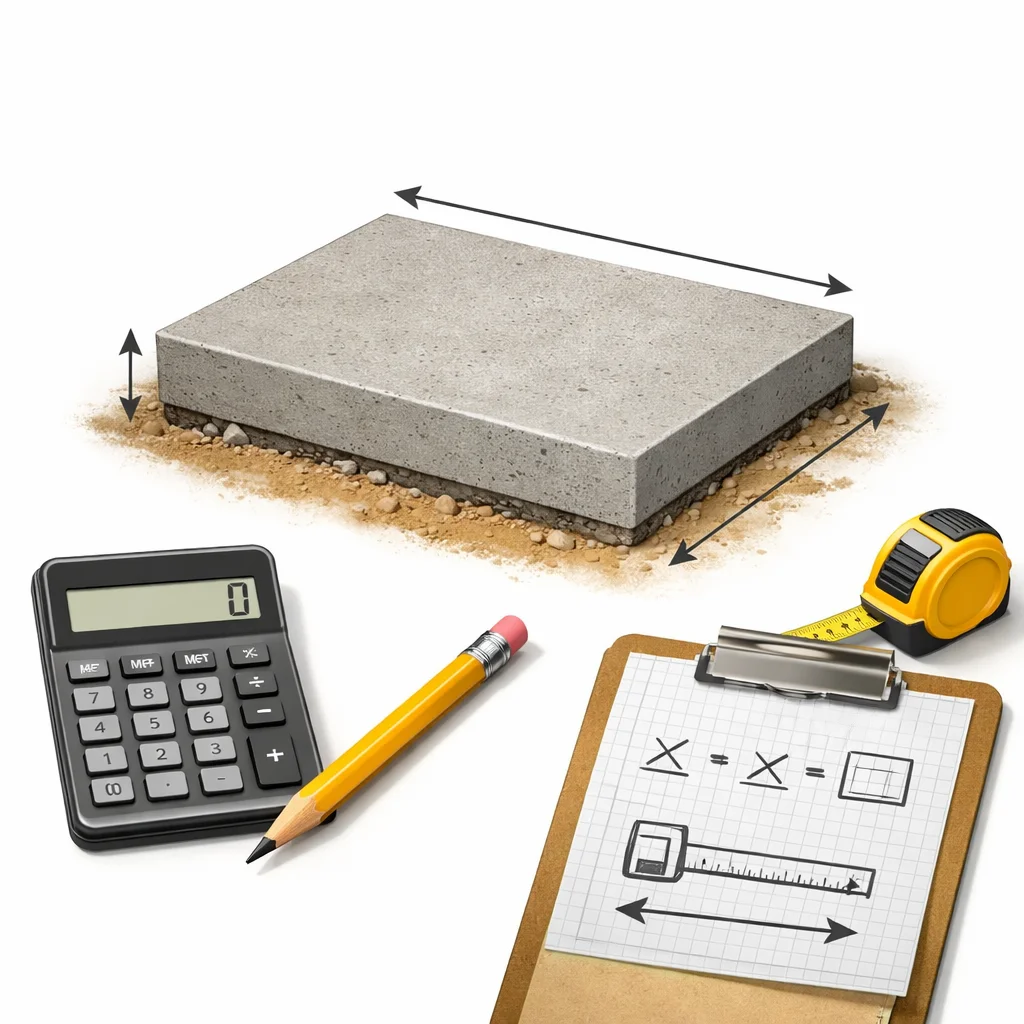 Most concrete bag calculator estimates start with a simple volume formula, followed by a bag-size comparison based on planning assumptions. Understanding these formulas helps you use the concrete bag calculator more confidently and compare bag counts against real project volume.