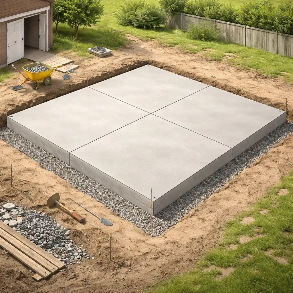 A patio slab, driveway slab, garage floor, and utility pad may all need different slab thickness depending on load and intended use.
